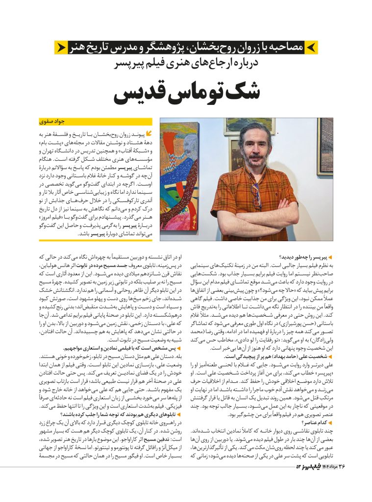 مصاحبه با زروان روحبخشان پیرامون ارجاعهای هنری در «پیرپسر»؛ (متن کامل در شماره ۵۳ ماهنامه فیلم امروز در دسترس است)